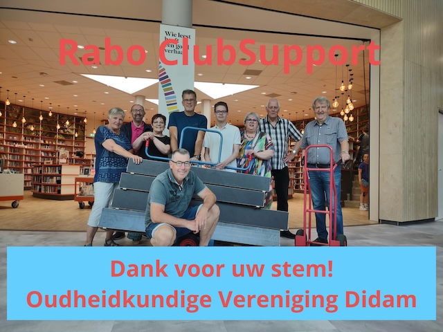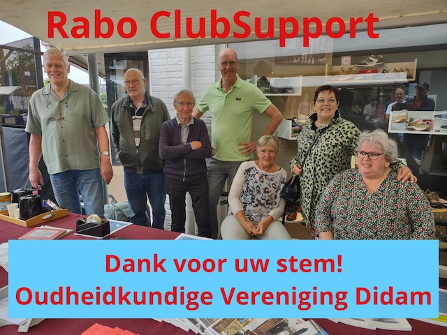 Stem op ons en help mee met de digitalisering en ontsluiting van ons fotoarchief. Zo maken we de rijke geschiedenis van Didam nog meer zichtbaar en toegankelijk voor iedereen. Jouw stem is geld waard, dus stem op ons via uw Rabo bankrekening vanaf 1 tot 23 september, kijk op www.rabobank.nl/clubsupport of in de Rabobank app (De Oudheidkundige Vereniging Didam is te vinden in de regio Arnhem).
